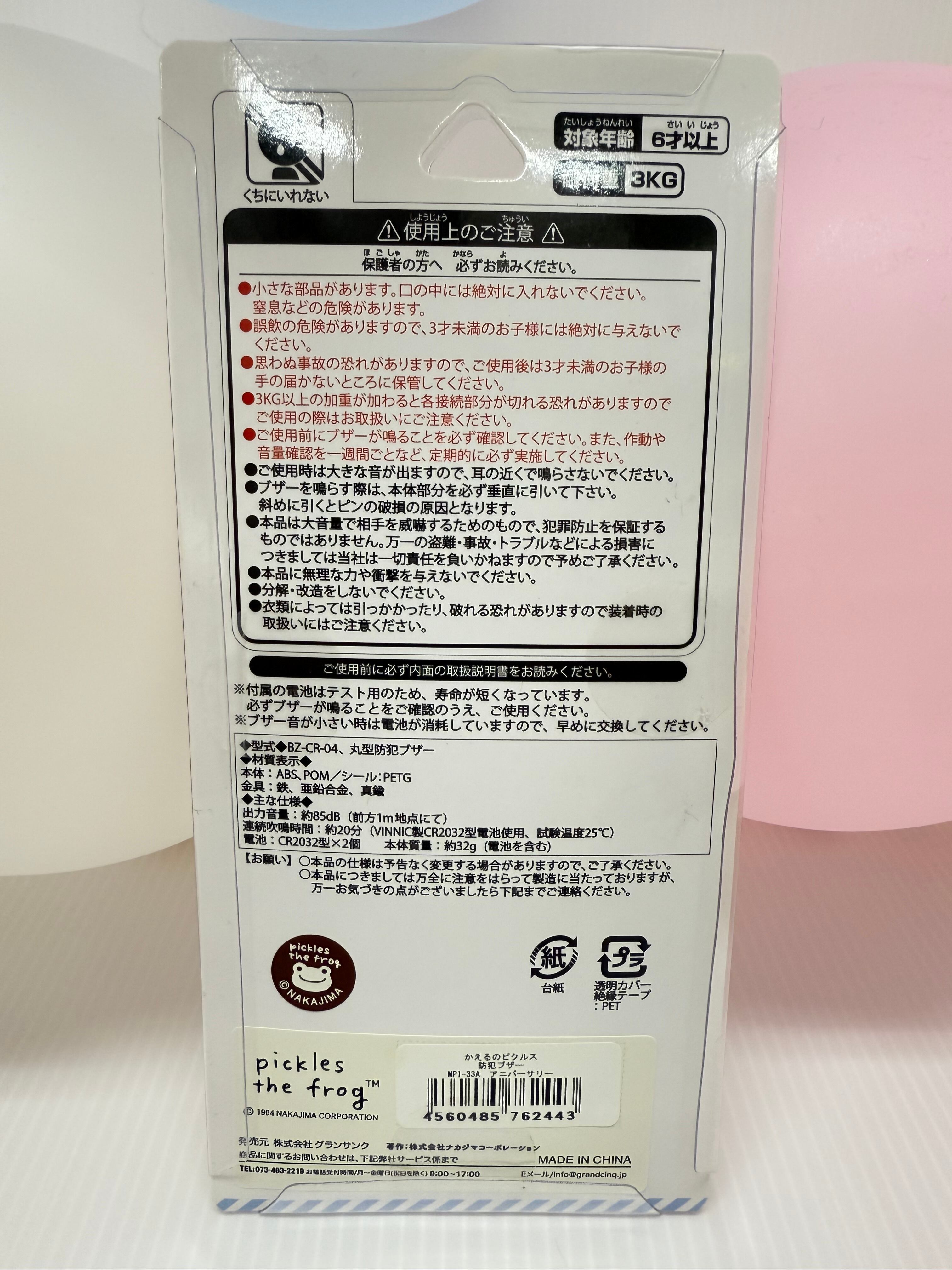 かえるのピクルス 防犯ブザーです!このアイテムは、かわいらしいかえるのピクルスデザインが特徴で、あなたの安全を守る心強いパートナーになります。日常生活の中での安心感をプラスし、大切な瞬間をサポートするアイテムです!